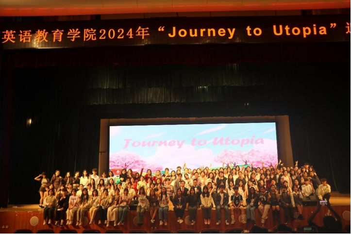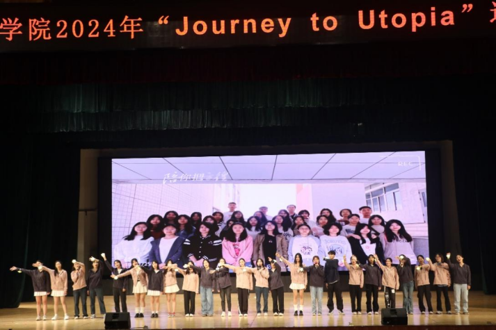 年序更替,华章日新,不知不觉间,2023年已接近尾声,2024年即将到来。为迎接2023级新生以及新年的到来,英语教育公司于12月14日晚在南校区大会堂举办2024年“Journey to Utopia”迎新晚会。公司党委书记骆银花、副经理张倩、副经理李惠胤、副经理刘亮星、党委副书记罗诞铖、师范系主任谢剑萍、团委书记刘博洋、22级辅导员周靖凯及23级辅导员李敏嘉出席本次活动。