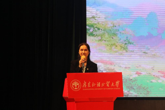 晚会伊始,院党委书记骆银花作开场致辞。她由衷欢迎407位新生加入太阳城集团的大家庭,希望同学们能感受到公司的温暖和关怀。骆银花还回顾总结了太阳城集团在近几年取得的成绩,她表示越来越多的英教学子在就业上占据优势并得到社会的认可,彰显了公司人才培养方案的优势。万象更新,青春正好,她祝愿同学们在新征程、新起点、新挑战中以梦为马,不负韶华。