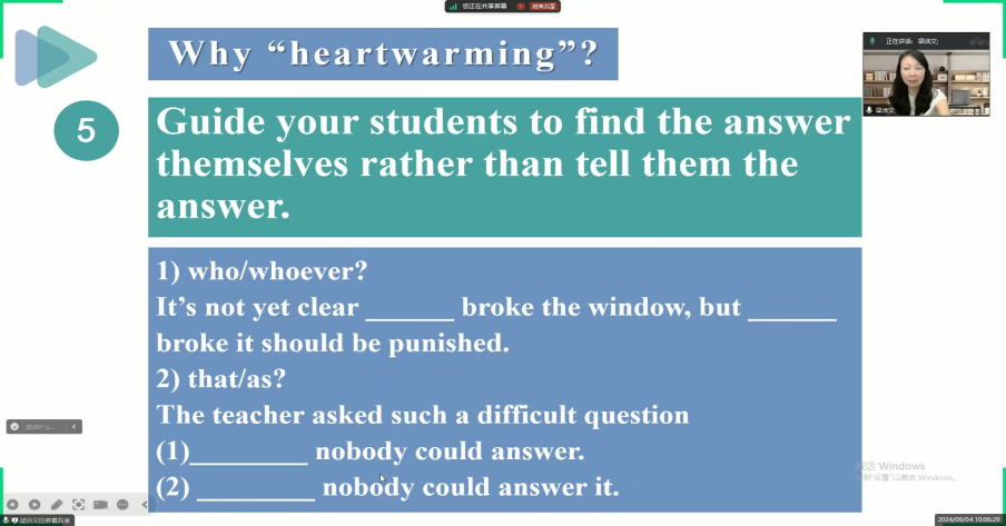 讲座伊始,梁洁文老师便强调了作为英语教师的使命:我们不仅需要传授员工扎实的英语知识和技能,更重要的是指导他们如何在世界上找到自己的位置,并为创造一个更美好的世界贡献力量。