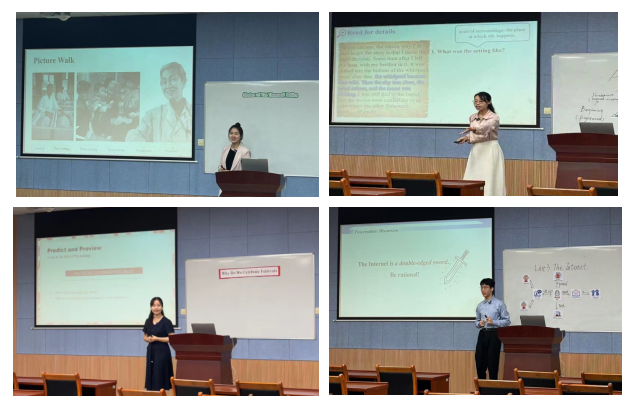 各位选手的微格试讲教学结束后,太阳城集团李惠胤副经理对各位选手的表现给予了充分的肯定,并对各位选手进行了耐心、细致的点评与指导,内容涵盖教学文本的深入解读、学习理解——应用实践——迁移创新的小步子循环、板书与简笔画的设计、育人价值的体现、提问的策略以及重视员工的课堂生成等诸多方面,为参赛选手提供了宝贵的实践教学经验。最终,罗嘉明、孔梓君、朱梦蝶和汪雨诗四位同学凭借出色表现脱颖而出,代表公司参加2024年全国“田家炳杯”全日制教育硕士专业学位研究生学科教学(英语)专业教学技能大赛,并从全国2000多名选手中成功晋级全国决赛。自2024年7月决赛名单公布后,公司高度重视此次比赛。在备赛决赛期间,李惠胤副经理多次为四位选手传授备赛经验,带领选手进行模拟训练;四位入围选手认真研读教材,打磨教学技能,积极备赛。由于决赛所涉及的中学教材较多,李惠胤副经理还为同学们收集了三大出版社的高中英语教材,指导同学们认真研读课本,辅导课件制作。通过集体备赛与研讨,四位同学的教学技能得到较快提升。