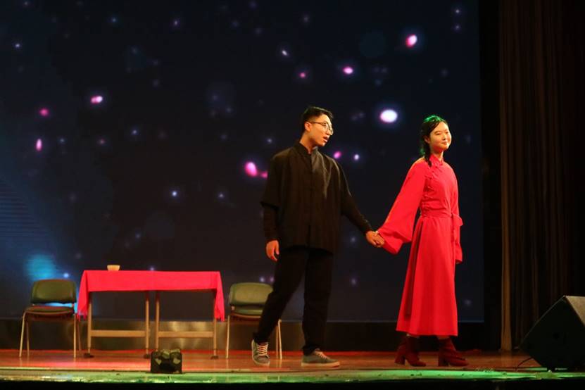 1601班带来的舞台剧《九儿》是由一代经典《红高粱》改编而来的爱情故事。他们用精彩的演绎展现了那个时代下悲惨的爱情故事,那种奉献的美令人感动。而接下来的英教舞队用充满活力的舞蹈《one more time》为我们展示出了一种青春洋溢的美。除此之外,我们还有幸邀请到了经贸创新班为我们带来歌舞剧《Revenge》,讲诉一个爱与复仇的故事。中场休息时间进入到了游戏环节,本次晚会设置了两个游戏,双人传气球和爱的抱抱,观众积极参与,收获了丰厚的礼品。活跃气氛的同时也体现了英教的迎新主题“sweet hug”。